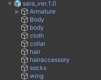 スカートはクロスコンポーネントというものを使うこともありますが、「サラ」ではコンポーネントの種類を増やしたくなかったので(種類を増やすとその分VRchat自体のアップデートで挙動が変化してしまうかもしれない対象が増えてしまうから。)スカートもPhysBoneを適用して表現しています。